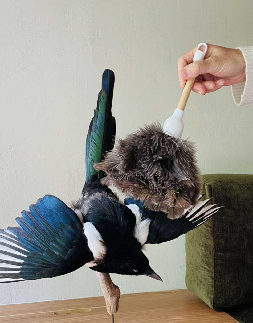 The biggest enemy of taxidermy is dust. Regular, gentle cleaning will help keep your piece vibrant and well-preserved.